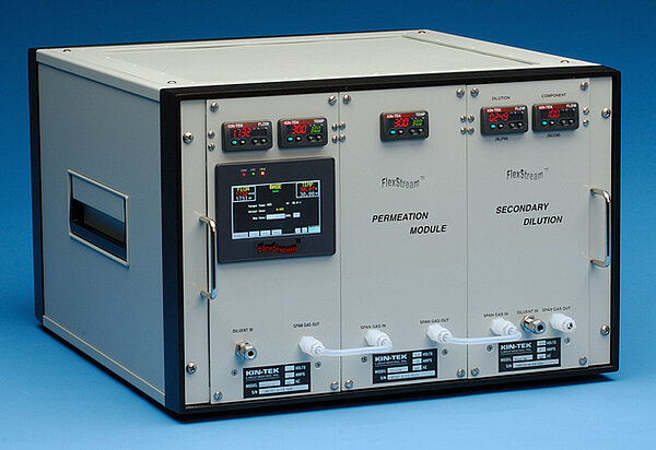 The FlexStream is ideally suited for creating trace concentration - ppm, ppb, and pptr - mixtures. The FlexStream uses KIN-TEK Trace disposable, refillable and diffusion permeation tubes for over 500 chemicals.